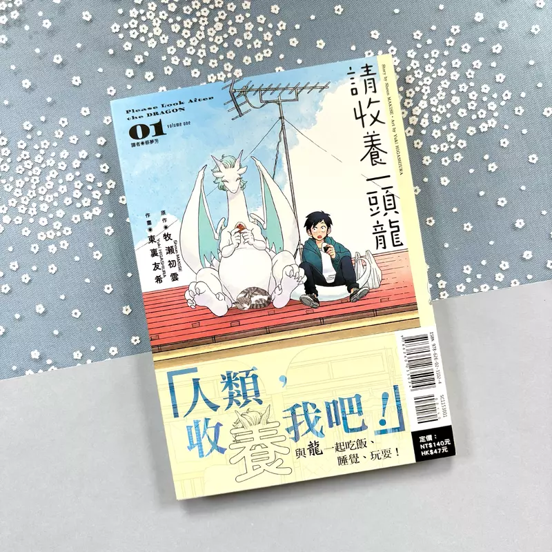 《請收養一頭龍》是由牧瀬初雲擔任原作,東裏友希負責作畫,2人共同創作的輕鬆日常奇幻漫畫,於2023年開始在小學館的《MangaONE》上進行連載。《請收養一頭龍》整部作品的氛圍節奏輕鬆明快,故事開頭就以簡單到不可思議的方式讓主角們相遇(ㆆᴗㆆ)!而喜愛動物與奇幻生物的讀者們也不用擔心我們的主角——母龍伊露瑟拉會為了報恩突然就變成龍人美少女之類的,因為她會以一個讓大家覺得「及格!」的方式展開新生活?!本作在日本備受受好評持續再版,也獲得眾多業界人士一致盛讚──如:《我們這一家》作者けらえいこ希望這頭龍能來自己家就好了、《即使如此依舊步步進逼》作者山本崇一朗喜歡伊露瑟拉天然笨拙與可愛的一面、《聖☆哥傳》作者中村光則覺得龍的生活方式療癒又可愛,讓人想親近等等~而當中最多人共同提到的喜愛之處,也正是本作的最大看點──龍就是龍真是太好了!