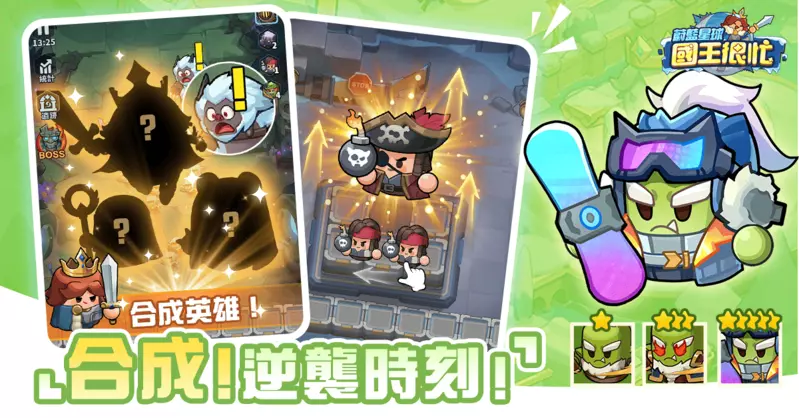 - 合合英雄配,天賜幫 Play:英雄可隨機合成更高階形態,連續三次合成還能解鎖隨機強力技能,秒殺全場。