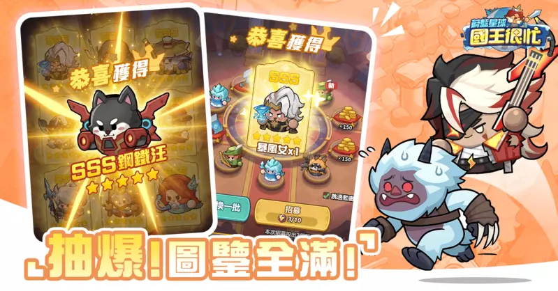 英雄招募福利再升級,十連抽最高可獲取十五抽,福利加量不加價!絕世英雄抽到手軟,國王可盡情招募強力英雄,點亮星球英雄全圖鑒,收藏癖狂喜!