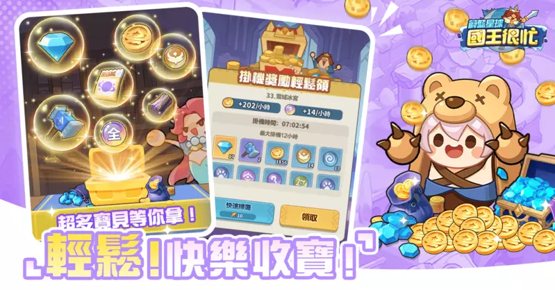 想掌握王國最新動態,請追蹤官方粉絲團及相關發布資訊!英雄隨心配,國王來PLAY,參與《蔚藍星球:國王很忙》事前登錄,第一時間享受當王的爽感!