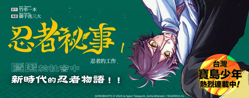 《忍者祕事》是由竹串一本擔任原作及御手洗三大負責作畫的作品,於2024年9月起在集英社《週刊少年JUMP》上正式開啟連載,也是兩個老師第二次攜手創作。此部作品自連載起便受到《齊木楠雄的災難》作者麻生周一的好評,前陣子更奪下2025年「下一部人氣漫畫大賞」的獎項,是近期最受到讀者們矚目的少年漫畫之一。