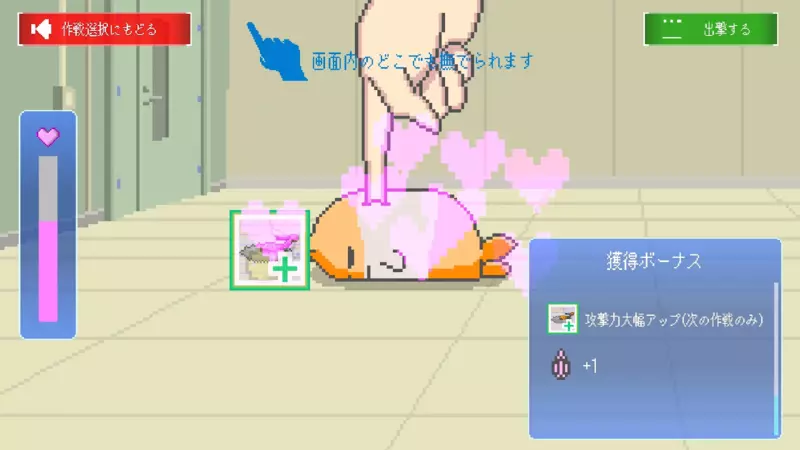 透過消耗戰鬥中獲得的金錢與種子,可以強化 MOCHIO,或獲得利於後續戰鬥的武器。此外,在出擊前撫摸 MOCHIO,可暫時強化其戰鬥狀態。除了戰鬥部分之外,角色之間溫馨可愛的互動,也是本作的一大亮點。