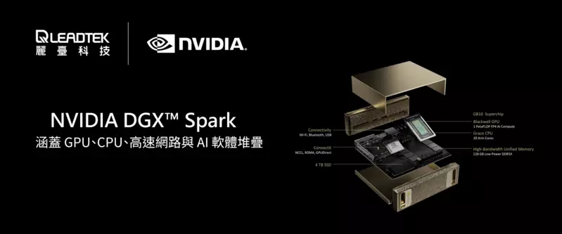 NVIDIA 推出創始版個人超級電腦 NVIDIA DGX Spark,由麗臺科技代理引進台灣。其高效能、低成本且易於使用,搭載 NVIDIA Grace Blackwell 超級晶片與 NVIDIA AI 軟體堆疊,賦能研究人員、數據科學家及開發者進行 AI 模型訓練和推論,加速 AI 創新。