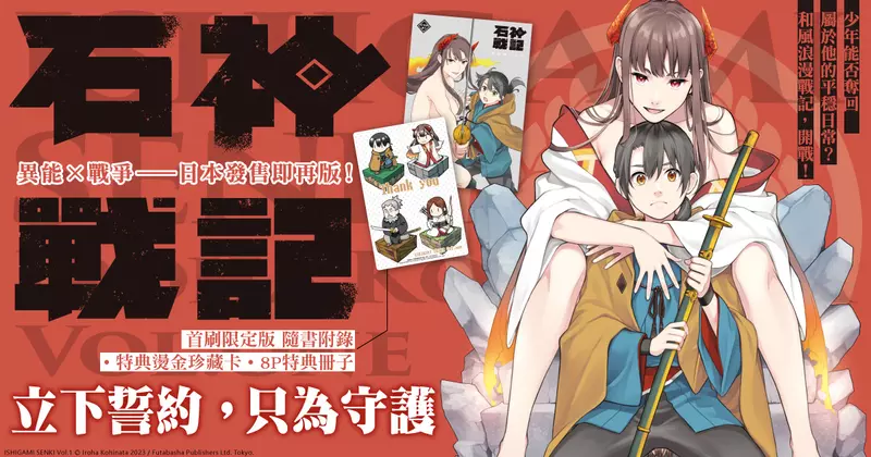年輕的伊左座在一夕之間經歷了足以讓人失去理智的劇變,同時還要遭受關於親情與愛情的考驗,而溫柔的少年在面對未知的神秘存在沒有失去求生的意志,反而奮力求生,讓讀者也緊張的想趕快知道後續發展!《石神戰記》第1集首刷限定版已於10月20日隆重上市,隨書附錄特典燙金珍藏卡&8P特典冊子!如果你也喜歡奇幻戰爭題材漫畫,或者想看大姊姊與少年的青澀愛情故事,就請千萬別錯過喔!