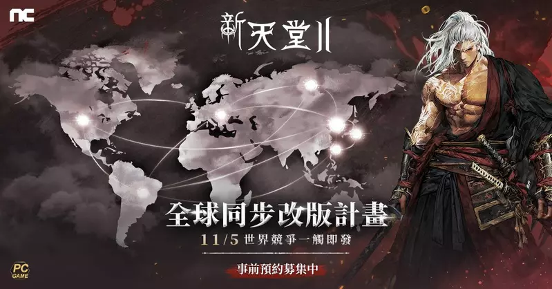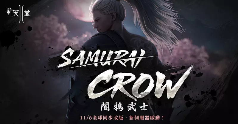 《新天堂II》將於11月5日進行全球同步改版「SAMURAI CROW闇鴉武士」,並於今(22)日開始事前預約活動。