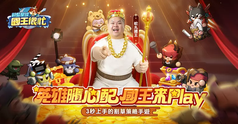 英雄隨機合成、3秒輕鬆上手的割草策略手遊《蔚藍星球:國王很忙》,於今日(10月23日)宣布邀請台灣知名創作者「大蛇丸」擔任遊戲代言人,並同步釋出精彩有趣的代言人宣傳花絮影片。