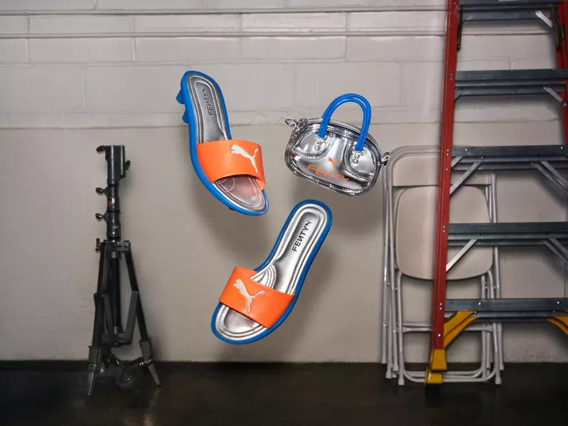 FENTY x PUMA 聯名系列帶來三款焦點鞋款,揉合足球元素與金屬細節,展現前衛與經典共存的時髦品味。本次焦點鞋履 FENTY x PUMA AVANTI LS-X 靈感源自 PUMA 經典足球鞋,透過金屬銀鞋面與流線造型重新演繹,鞋舌延伸設計呼應未來感設計,搭配上鮮橘彎刀與湛藍大底的撞色配置,襯托整體金屬感,體現 Rihanna 獨具前衛的設計視角。而 FENTY x PUMA Slide Chic L 與 Slide Chic Fur 兩款涼拖鞋型,分別以果凍感中底與或毛絨材質的設計打造,展現出趣味層次,將足球元素轉化為日常穿搭的亮眼焦點,讓金屬系足球美學自然融入日常穿搭。