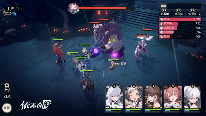 《依露希爾》採用布陣對戰的戰鬥形式,團長大人可依照角色職業特性,靈活調整前後排配置,打造最契合的戰術組合,開啟隊伍羈絆並找出克制敵軍的搭配,突破重重關卡。