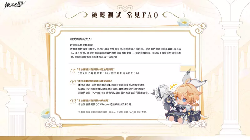 團長大人可透過 Android(Google Play)、iOS(TestFlight)以及 PC (官網下載)等多平台來加入 CBT,率先感受全面升級的戰鬥系統與嶄新劇情內容。本次封測不設人數限制,所有參與者皆能直接進入遊戲,與魅惑女團並肩作戰,體驗專屬於 Remake 版本《依露希爾》的真香快感。