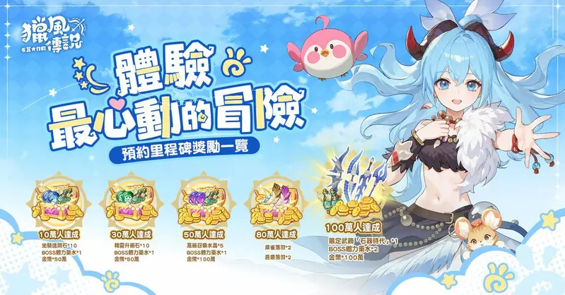 - 預約人數達30萬:全體玩家可獲得精靈升級石*10、BOSS體力藥水*1、金幣*50萬
