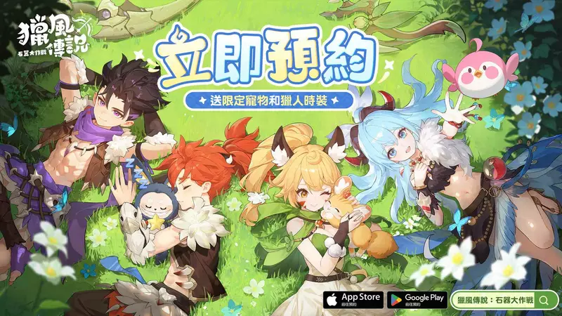 《獵風傳說:石器大作戰》官方事前預約現已正式開放,歡迎立即參與預約!完成預約即可免費獲得送「石器時代」獵人時裝、SSR級寵物「卡佈佈」、千張寵物十連券、百億星鑽!還有其他豐富獎勵內容: