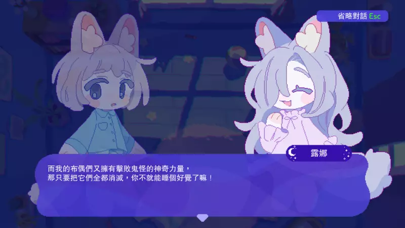 《月下夢景》是一款以與幽靈進行追逐為主軸的動作遊戲。與個性豐富的布偶們一同逃離無法入眠的夜晚吧。為紀念 Steam 上市,即日起至 11 月 24 日止提供 10% 折扣優惠!