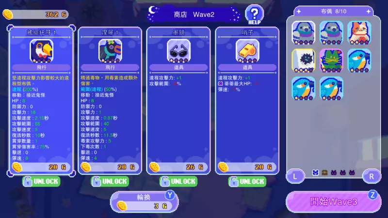 「故事通關啦!」……等等,真正的挑戰現在才開始!蒂蒂可以換上超過 20 種服裝,不同造型會賦予布偶強大加成,也可能帶來致命缺陷。搭配各式布偶與道具,突破所有夢魘關卡吧!