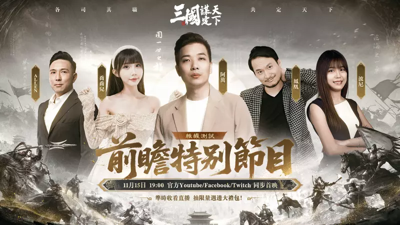 請主公們務必鎖定 11/15(六)19:00 官方節目直播(YouTube/Facebook/Twitch三平台同步)獲取第一手「帷幄測試」重點內容與搶先資訊!