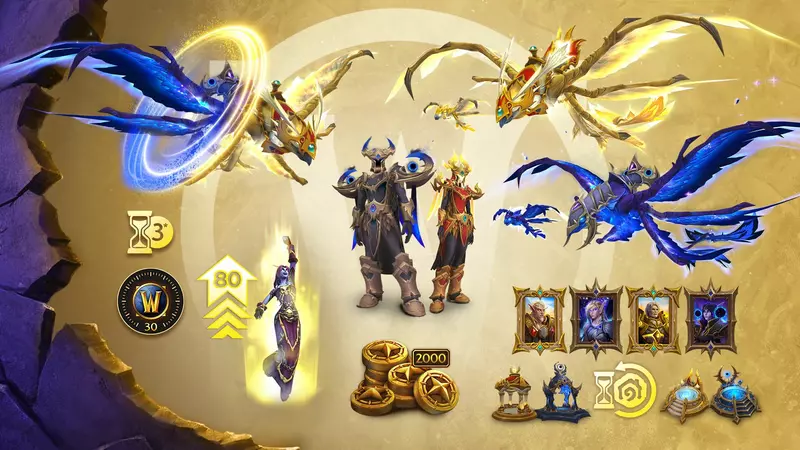 史詩級故事《世界之魂戰記》的下一個篇章即將開始,在Battle.net商店預購全新資料片《魔獸世界:至暗之夜》,以解鎖能在冒險之旅中助你一臂之力的優秀物品!「《至暗之夜》英雄組合包」內含強化的角色直升80級、1,000枚商人的標幣、飛行坐騎「光翼龍鷹」、塑形套裝「光明行者衣飾」等物品。若希望加入《至暗之夜》Beta測試版本,可購買或升級至「《至暗之夜》史詩組合包」,除了包含英雄組合包的所有內容外,還能獲得額外的2隻寵物、2個飛行坐騎、1個塑形套裝、房屋裝飾,以及《至暗之夜》正式版的3天搶先體驗資格!