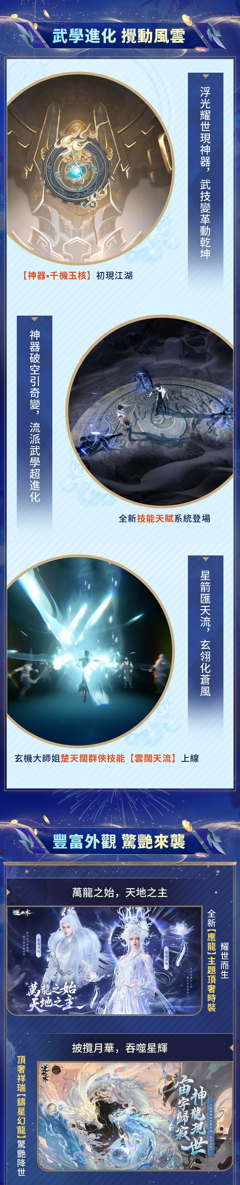 同步開啟玄機駐地、無朽冰川、崑崙虛等新地圖, 讓待玩家使用全新玄機科技,深度互動探索大世界。相應主線劇情也將開啟,誠邀各位玩家以主角身份,親手改寫大世界的命運。