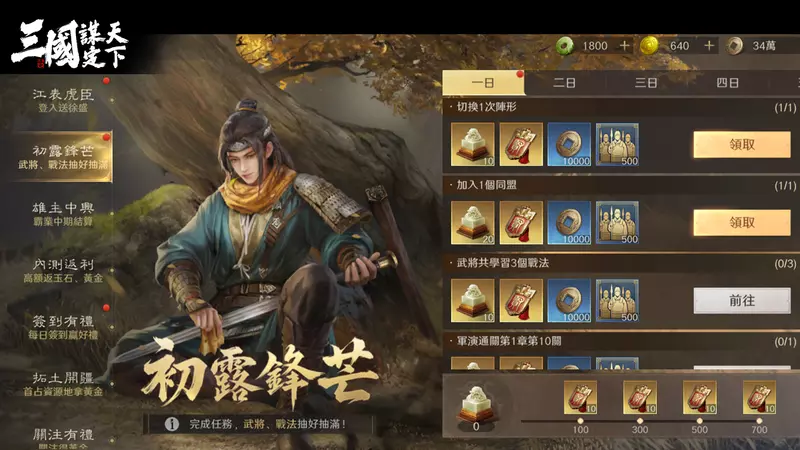 每完成日常任務即可獲得大量求賢令等各種發展資源,是新手玩家們最主要獲得橙將及戰法的福利活動。