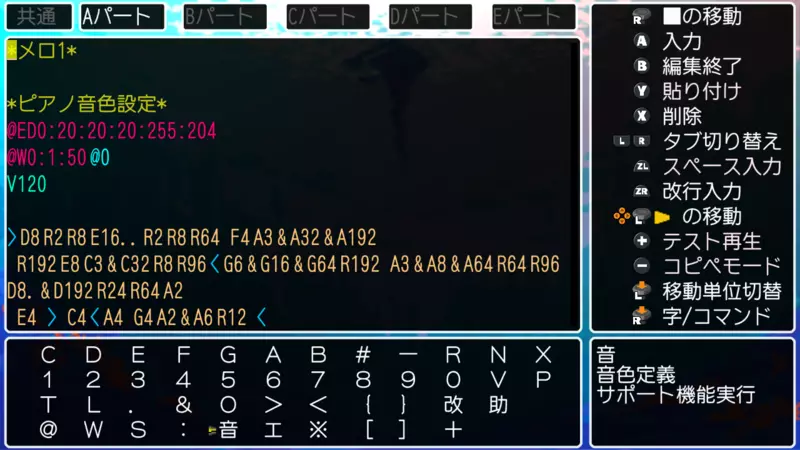 能夠自由編輯的不只是角色! 本作中可自創BGM的「音樂」功能也全面強化! 支援粉紅噪音,將可製作出節奏樂器與各種音效。此外還新增了音色、波封設定與巨集控制,讓你能創作出更豐富多變的樂曲!