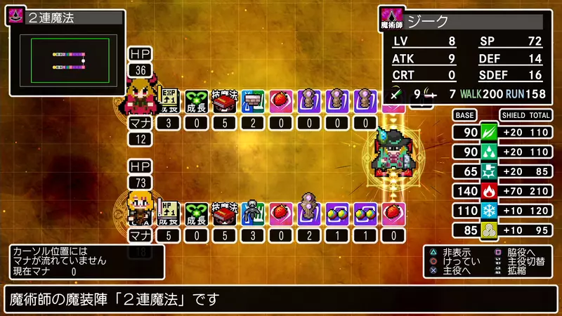 ‧隨著成長,還能習得在防禦時效果會變化的魔裝陣。