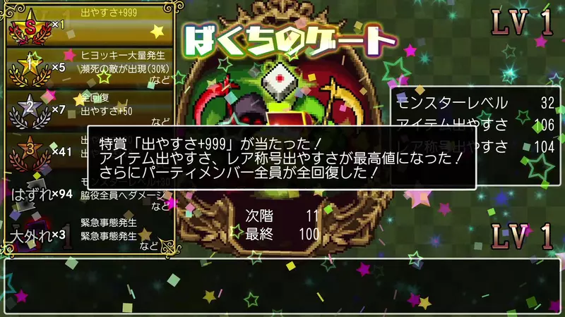手氣好的話,甚至有機會進入擊倒敵人就會掉落道具的大放送狀態! 但若手氣不佳,也可能遭遇魔物等級被提高到破千,在尋找出口的地獄中徘徊的窘境……!?
