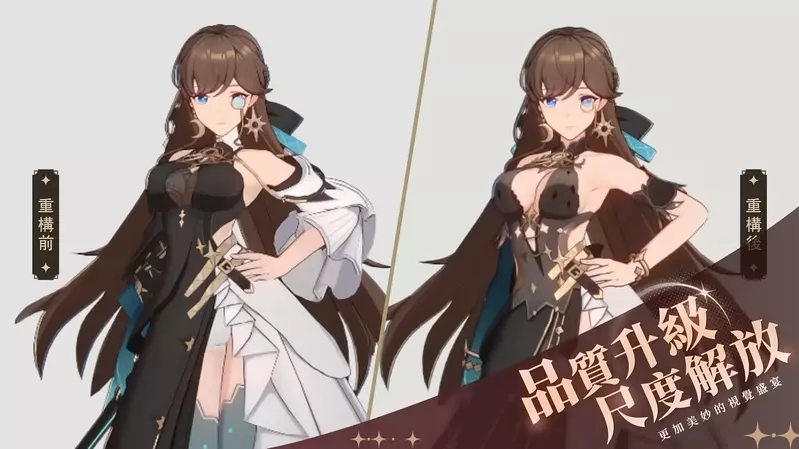 本作以魅惑女團風格打造角色視覺,有別於先前版本的建模,本次 Remake 版本從立繪細節、服裝材質與外觀皮膚皆具高完成度,從甜美到成熟風格皆能展現成員獨特個性。角色在舞台與戰鬥中的表現亦透過光影優化,呈現更鮮明的舞台感。