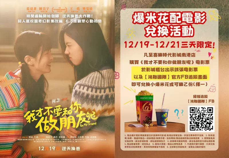 以高達 6.3 億次播放量刷新青春劇口碑的《我才不要和你做朋友呢》,電影版即將在 12 月 19 日 正式攻台。劇集憑藉清新真摯的情感、幽默又帶點心酸的青春記憶,累積大批死忠粉絲,此次電影版的消息一出便引發高度關注。