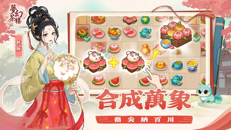 玩家可透過拖曳合成方式製作各類甜點、茶飲與道具,並藉此賺取金錢,用於升級與裝潢自家茶樓。