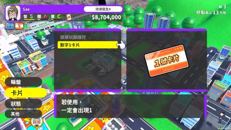 此外,在遊戲進行時也可以獲得各種卡片,每張卡片都有不同的效果可於遊戲的過程中獲得幫助,朝玩家有利的局面發展。