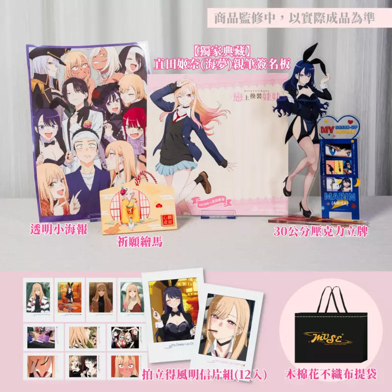 《戀上換裝娃娃》聲優見面親遞會將於2026台北國際動漫節大會舞台進行,本次舉辦2月8日及2月9日兩個場次,名額皆有限。參與見面親遞會的粉絲可以獲得滿滿海夢的最新商品組合,包括:30公分高的喜多川海夢(十六夜亞里紗)造型壓克力立牌、和服LOOK的祈願繪馬、動畫第二季主視覺的透明小海報,以及拍立得風明信片組。由直田姬奈親筆簽名的紀念簽名板,這項只有參加活動才能獲得的特別紀念品,會由聲優本人親手遞送給你!