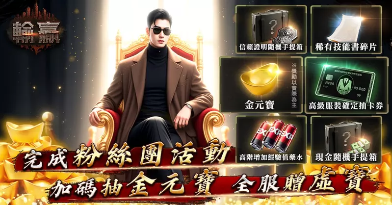 不僅如此,《輸贏》官方粉絲團也將舉辦贈禮活動,玩家只要分享自己的事前預約截圖,並回答出貼文活動問題的正確答案,即有機會獲得實體「金元寶」獎勵,以及全服加碼再送「高級服裝確定抽卡券」、「稀有技能書碎片」、「高階增加經驗值藥水」、「信賴證明隨機手提箱」與「現金隨機手提箱」等虛寶,更多活動資訊,可至官方網站及粉絲專頁查詢。