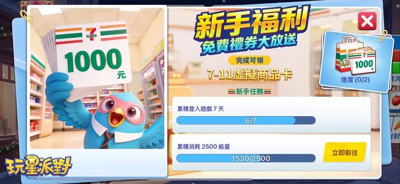 官方強調,《玩星派對》堅持全程無插頁廣告,以提供最順暢的體驗。針對新加入的玩家,只要完成簡單的「七日新手任務」,即可獲得7-11禮券,最高面額達NT$1,000元,主打「人人有獎」的回饋機制。