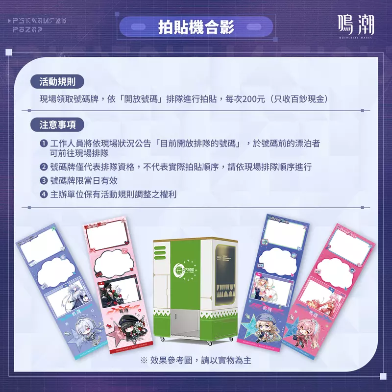 ※星炬拍貼機活動規則:現場領取號碼牌,依現場工作人員引導排隊進行拍貼,每次200元(只收百鈔現金)。具體活動安排依現場工作人員說明為主。
