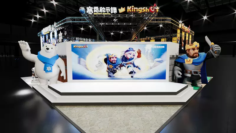 超巨打卡點一秒吸睛!主舞台兩側的4米高毛茸茸《寒霜啟示錄》大白熊與超威武《Kingshot》國王雕像,呈現最具氣勢的展出,繼去年大受好評的 AR 獵熊玩法,今年主舞台全面升級,玩家只要進入範圍即會收到《寒霜啟示錄》大白熊拋雪球打招呼,也有機會被《Kingshot》國王設為標靶、shot中紅心!