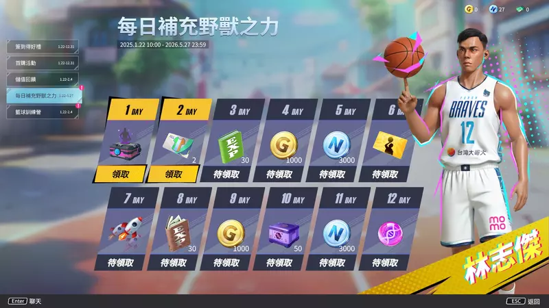 致敬野獸精神!遊戲內推出為期 12 天的特別簽到活動,玩家每日登入即可補充「野獸之力」,領取關鍵養成資源,天天登入、天天有獎,助你球技與資源同步飛升。