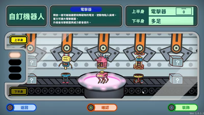 隨著關卡逐一通關,可使用的動物角色與機器人零件也會逐步增加。