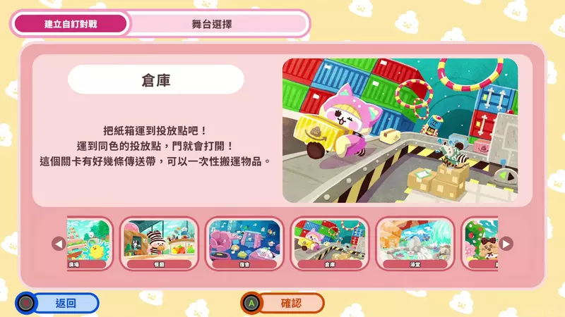 遊戲舞台由充滿各種機關與特色的 6 個關卡 所構成。