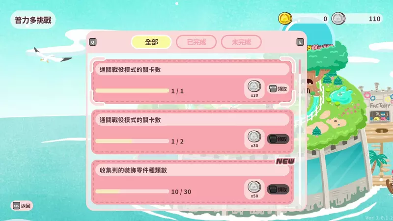 完成遊戲內所設定的各項挑戰目標後,即可獲得 普力多硬幣 以及裝飾道具等獎勵。