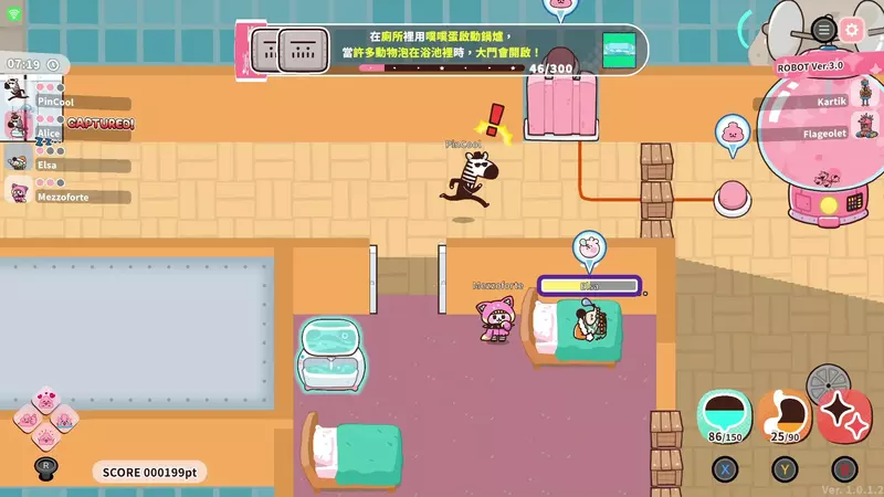 ・【機器人隊伍】:捕捉動物並將其送往休息室,阻止牠們從島上成功越獄!