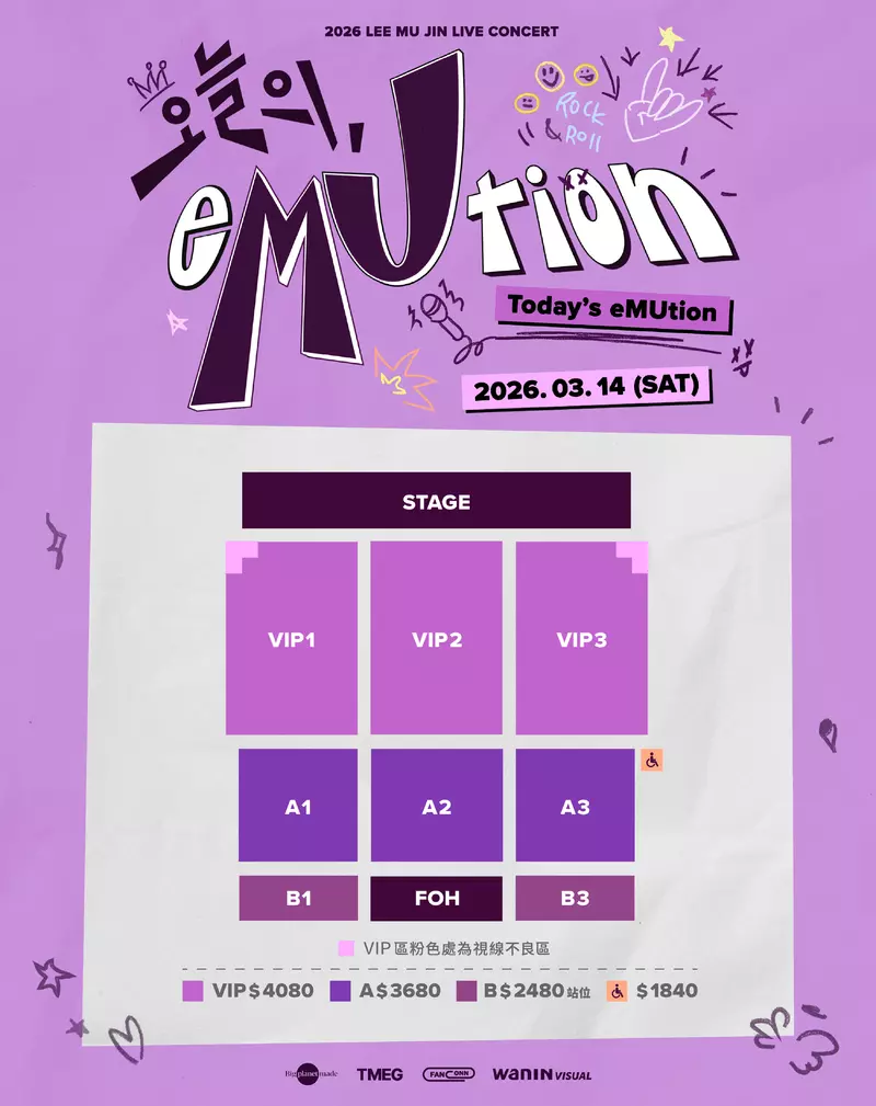 票價|NT$4,080/NT$3,680/NT$2,480(VIP、A區為座席;B區為站席)