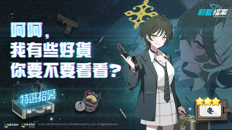 《蔚藍檔案》於2月10日改版推出全新活動劇情「為了誰而存在的藝術~偽畫與美學的去向~」,並舉辦兩名「狂獵藝術學院」所屬新學生的特選招募:「特殊交易部」的部長「美代」及自稱營業室長的「冬」。