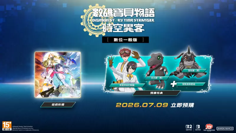 萬代南夢宮娛樂宣布,系列作品史上PlayStation®5/Xbox Series X|S/STEAM®版的全球累積銷量最快突破100萬套的培育型RPG《數碼寶貝物語 時空異客》,即將在2026年7月9日推出Nintendo Switch™ 2/Nintendo Switch™版。同步公開最新宣傳影片。