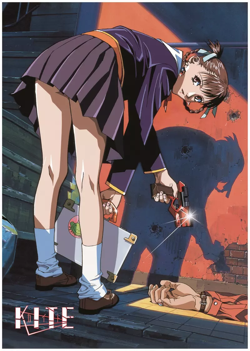 《A KITE 風箏》描繪在充滿罪惡的都市角落,少女殺手砂羽(Sawa)如同風箏般被冷酷腐敗的刑警赤井操控 。這部作品將少女悲劇性的魅力表現到淋漓盡致 ,不僅在歐美被視為「宗教式邪典」,才深受好萊塢名導昆丁·塔倫提諾等大導的高度讚賞。 這兩部作品在製作公司 ARMS 與 Green Bunny 的精湛技藝下,其細節與動作流暢度至今仍是業界天花板 。