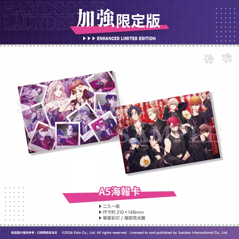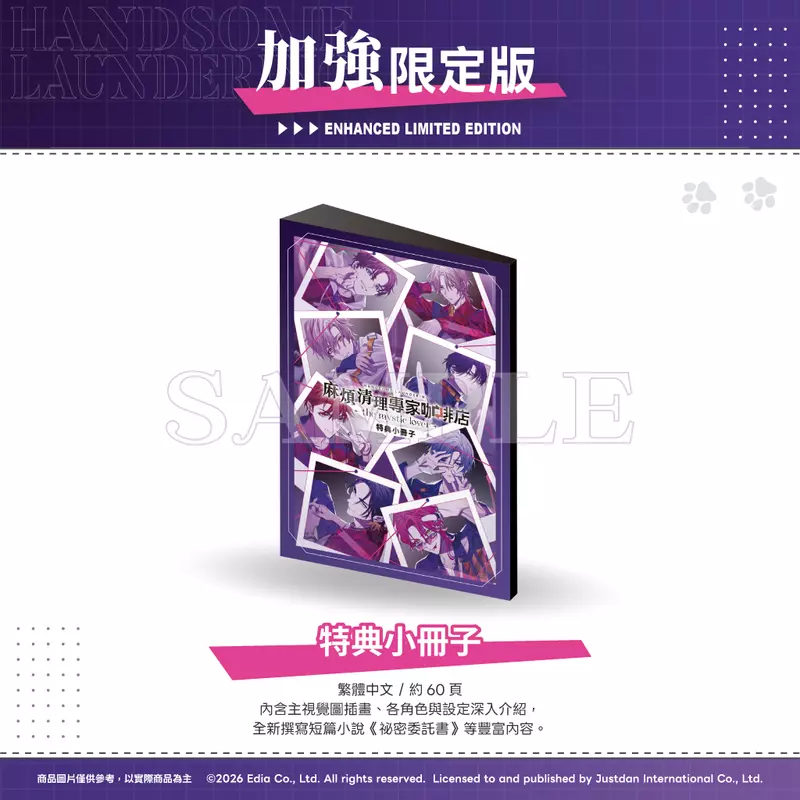 本次推出的加強限定版商品,包含加強限定版特製外盒、完整中文化特典小冊子、特典廣播劇+BGM下載卡、A5海報卡、繁體中文版角色訊息明信片(全新撰寫)、Q版角色郵票造型防水貼紙、手機掛繩夾片,以及角色立牌和亮閃徽章等豐富內容,等著各位玩家來一探究竟。準備好與各具魅力的「L&L café space」店員們,一起進行神祕委託了嗎?