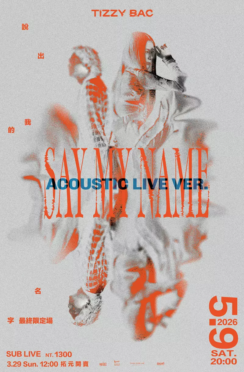 Tizzy Bac宣布加碼推出《說出我的名字》最終限定場「ACOUSTIC LIVE」,將於5月9日(六)晚間8點在SUB LIVE開唱,門票預計於3月29日(日)中午12點於拓元售票系統正式開賣。Tizzy Bac坦言,這場演出讓他們壓力爆棚,形容宛如挑戰自己「素顏」上台!