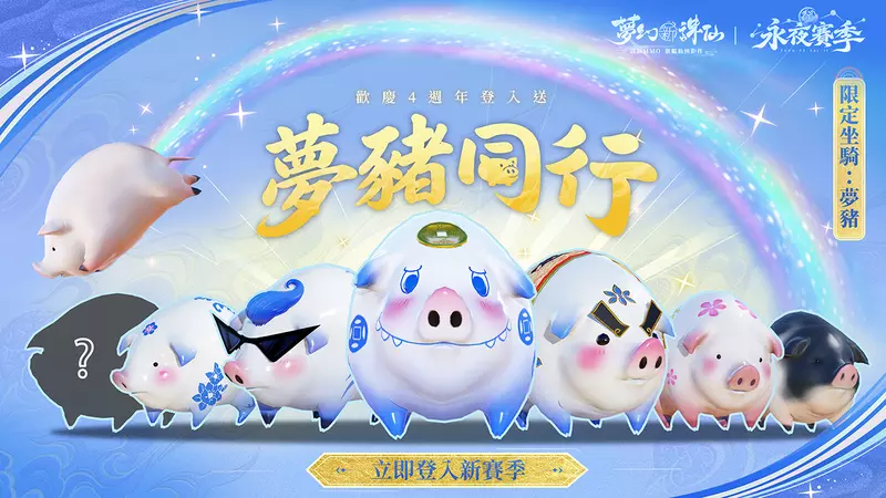 《夢幻新誅仙》歡慶四週年,登入送超萌坐騎-夢豬! 2026年全新賽季-永夜賽季熱血開打!