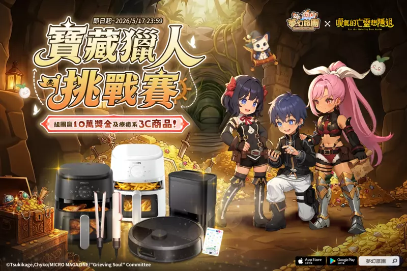 延伸《嘆氣的亡靈想隱退》中「寶藏獵人」的核心精神,《夢幻旅團》將於 4/24 起同步推出大型聯動主題活動「寶藏獵人挑戰賽」,邀請玩家組隊參戰,角逐總獎金新台幣 10 萬元的榮耀寶座。活動期間內,玩家可自由組成 3 人「探寶旅團」報名參賽,透過團隊合作挑戰兩大競賽項目。無論是比拚綜合實力的「最強戰力團」,或是展現放置玩法精髓的「躺贏冒險王」,都將考驗玩家策略與養成成果,最終勝出隊伍將抱走最高新台幣 50,000 元獎金。