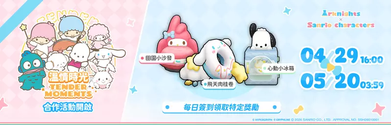 《明日方舟》x《三麗鷗家族》聯動合作開跑、「溫情時光」合作活動限時登場